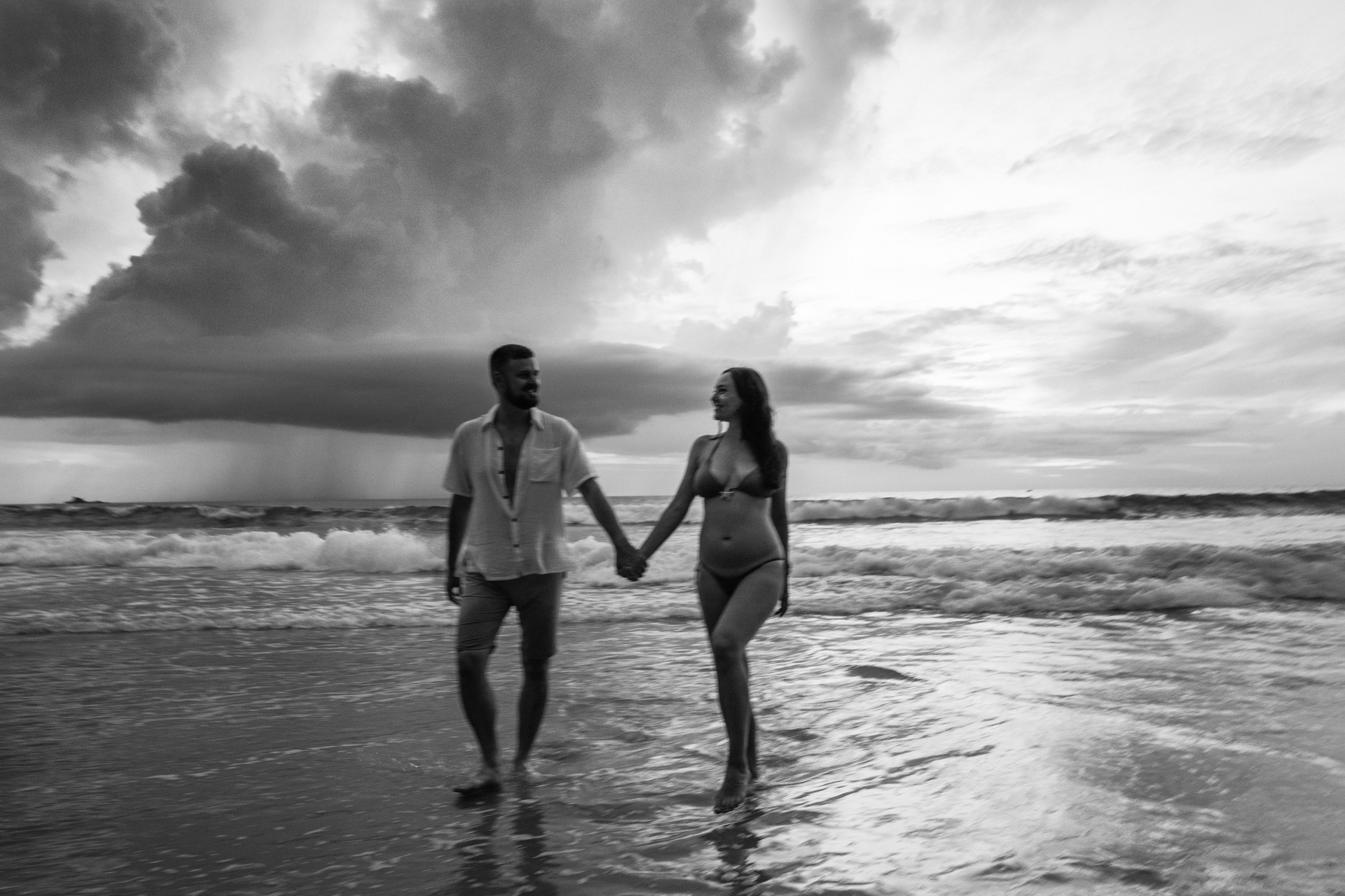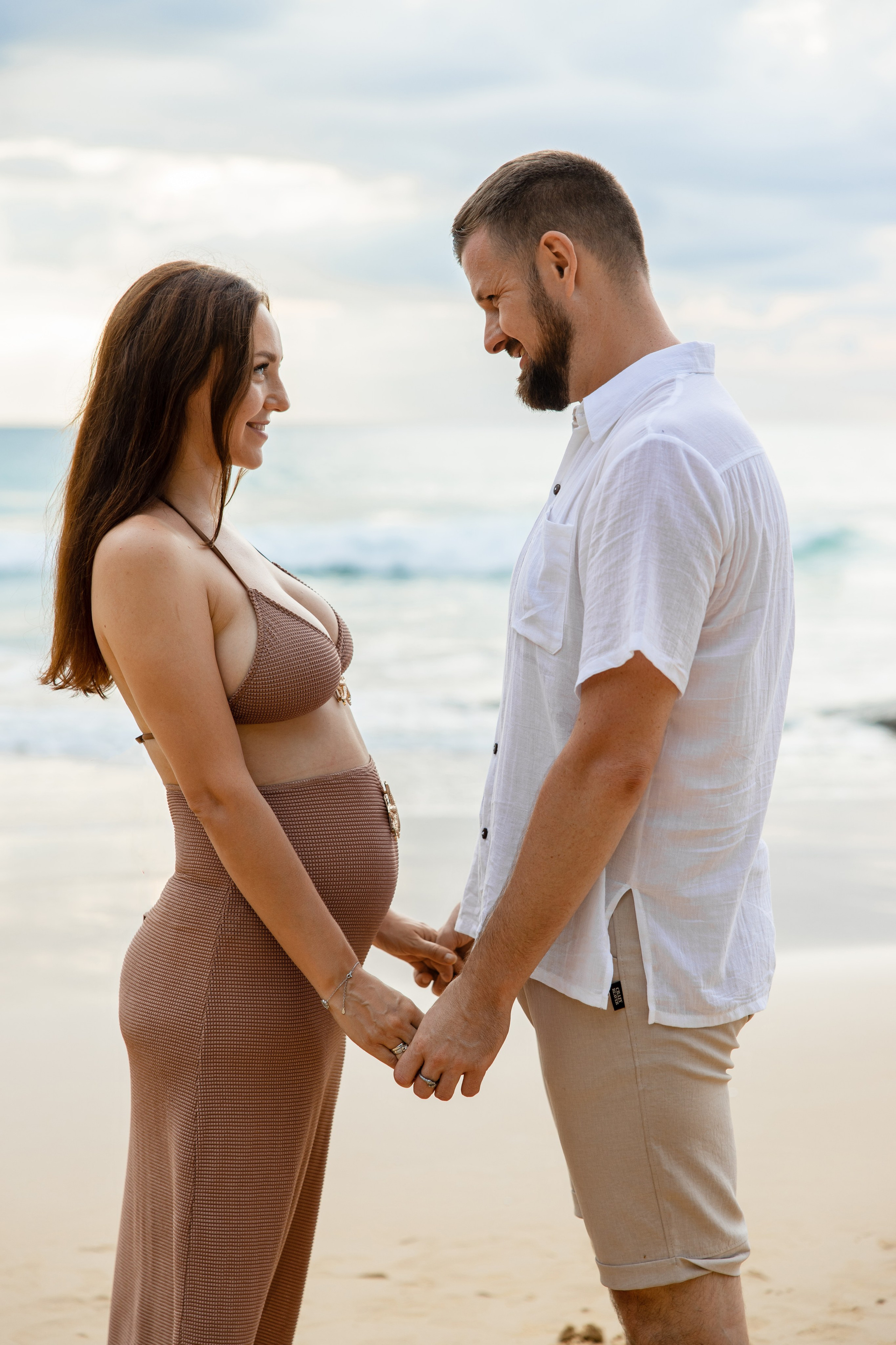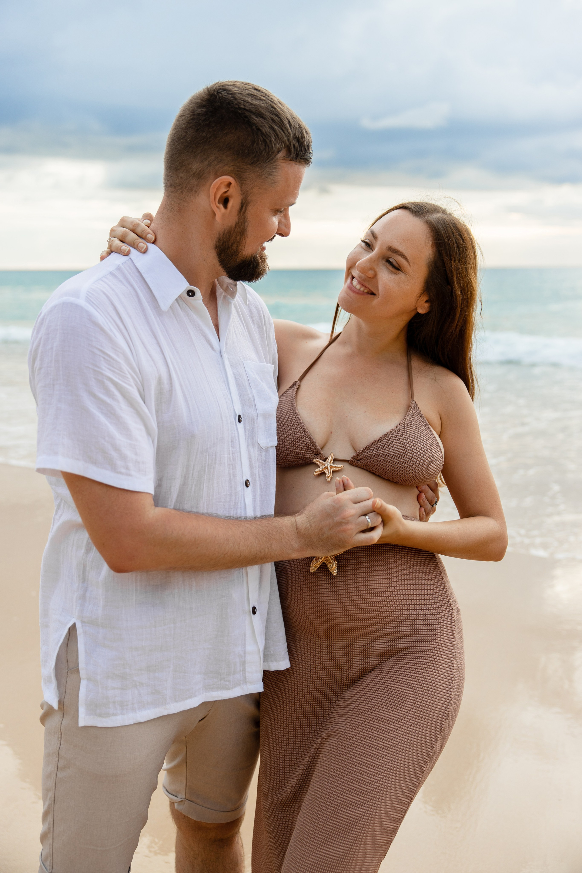 Во время этой съёмки мы уловили настоящие эмоции пары — нежность, заботу и гармонию. Естественный свет, спокойная морская волна и золотое свечение заката сделали фотографии тёплыми и живыми.